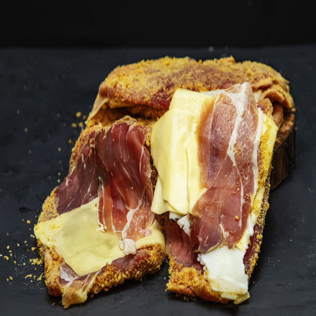 Cachopo a la gallega de jamón serrano, queso tetilla, pan crujiente y pimienta negra.Una de nuestras especialidades a la hora de saborear en nuestras tierras gallegas. La combinación del jamón serrano curado y tetilla gallega hecha a mano por nuestros fabricantes con sus terneras de procedencia gallega, es lo que hace que esta tetilla tenga un sabor inmejorable a la hora de comerlo. Muchas Vigueses han probado este producto, si no eres de esta ciudad te podemos acercar a tu domicilio un poco de nuestra tierra.